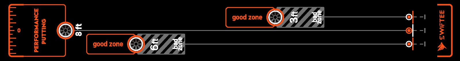 • 3 Distance Practice Zones – 3ft, 6ft & 8ft